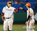 | 김태균 내년 목표 '홈런왕도 노린다?' Oct 2nd 2012, 23:46  | '내년엔 타격-홈런왕 노린다?'한화 김태균이 내년 시즌 목표를 내비쳤다.타자 부문의 핵심 타이틀인 타율과 홈런왕을 동시에 노린다는 것이다.김태균은 2일 대전구장에서 SK전을 치른 이후 모처럼 기분좋은 수훈선수로 뽑혔다. 3-4로 뒤져있던 9회말 2타점 끝내기 안타를 치며 홈팬들에게 짜릿한 즐거움을 선사했다.경기 후 방송 인터뷰에 나선 김태균은 팀내에서의 인기를 실감케 했다. 2년차 유창식이 인터뷰 중이던 김태균에게 콜라를 발사해 '방송사고 세리머니'를 했다. 곧이어 신인 하주석이 나타나 이번에는 사이다를 끼얹었다. 인터뷰가 끝날 즈... | | | |